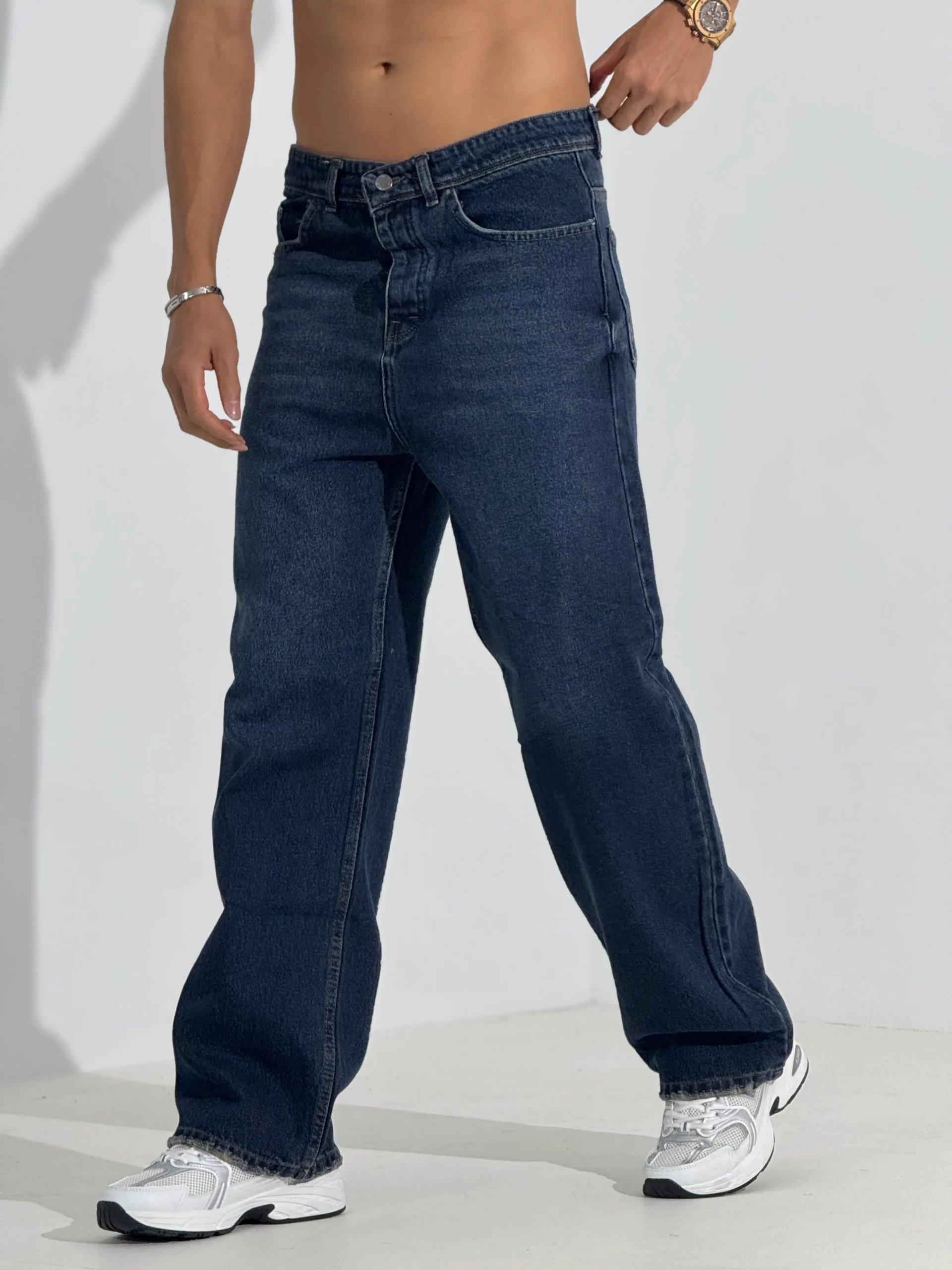 شلوار جین بگ مردانه سرمه ای کد 0006-1