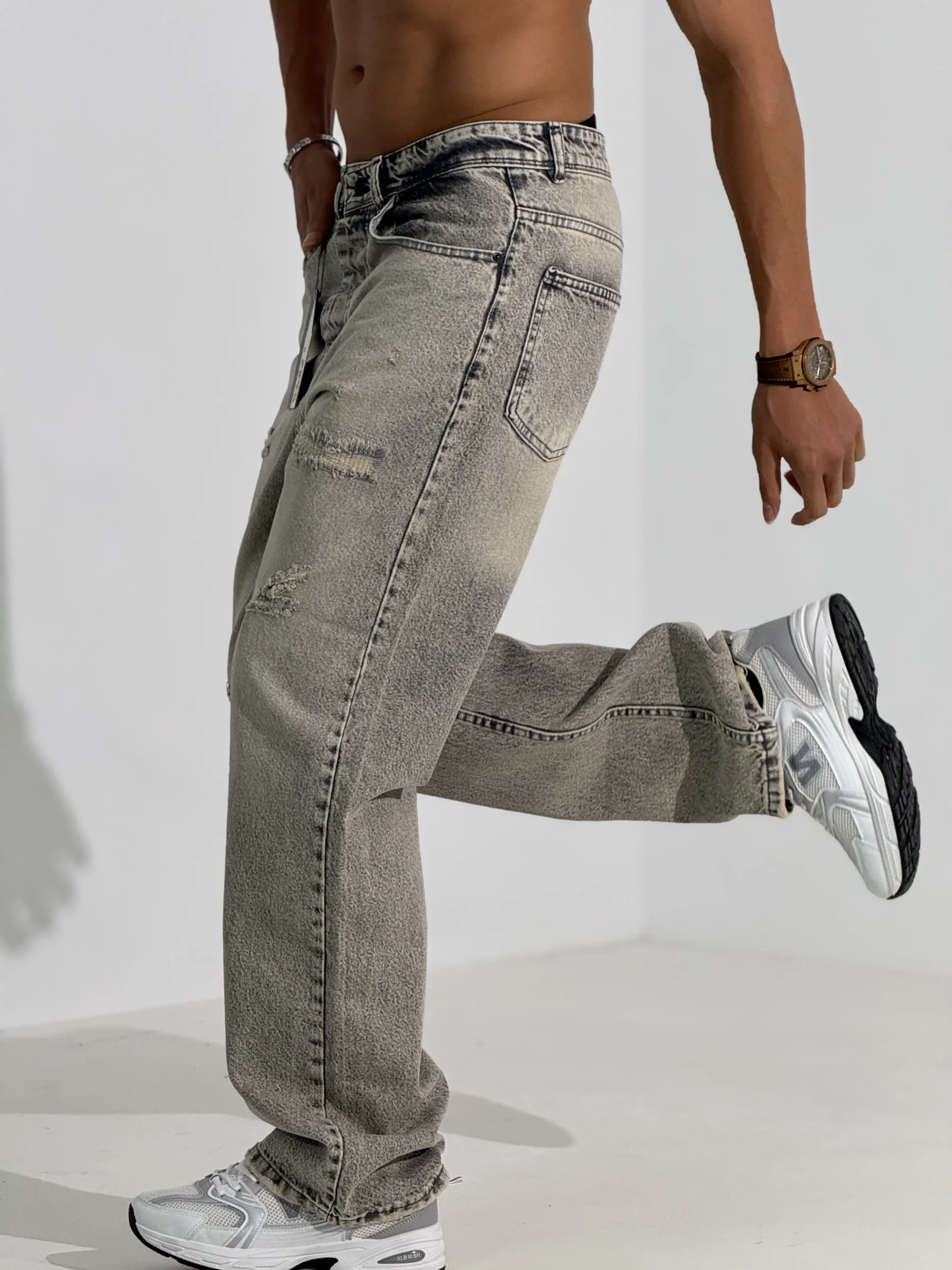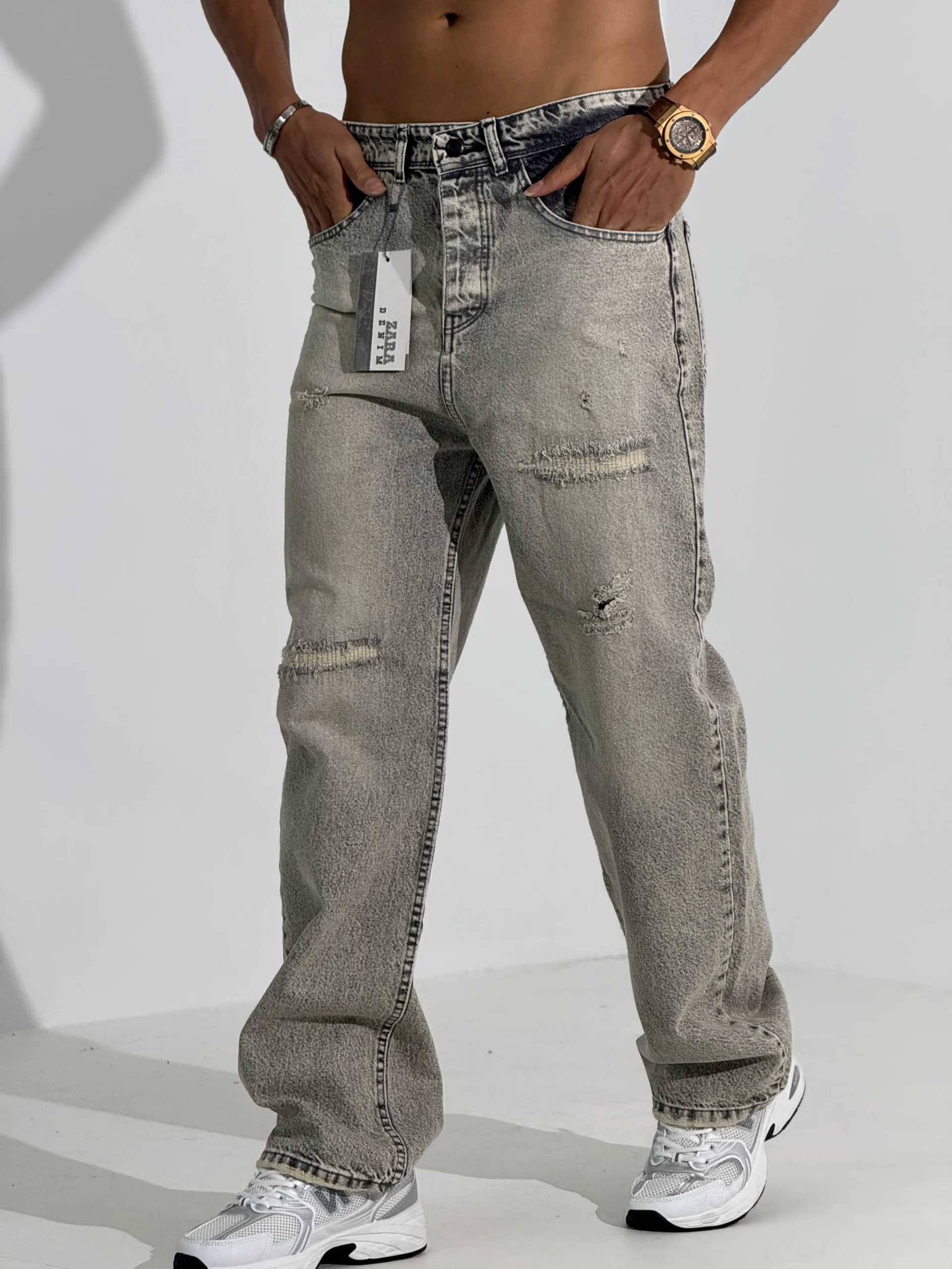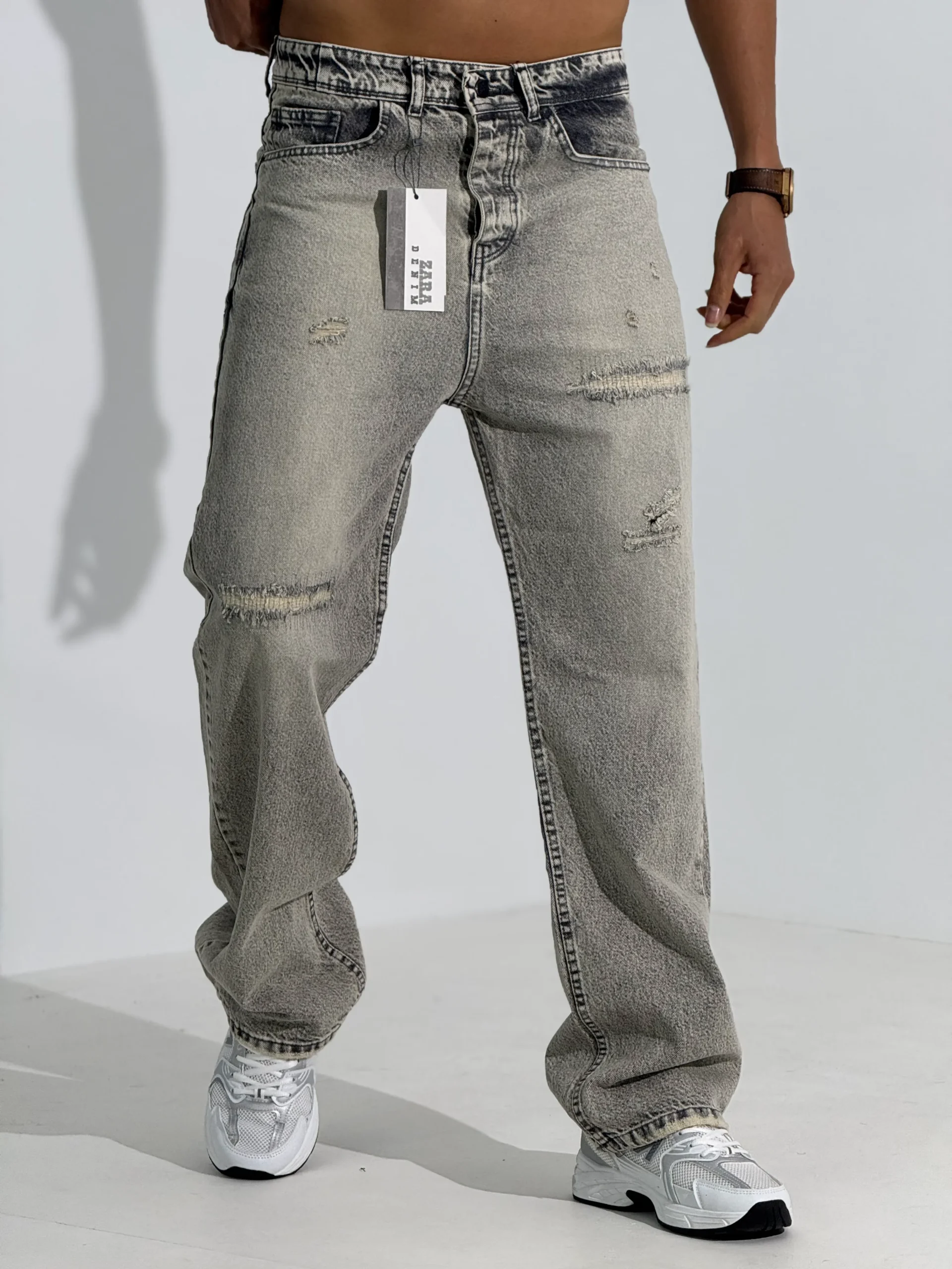 شلوار جین بگ مردانه طوسی کد 0006-4